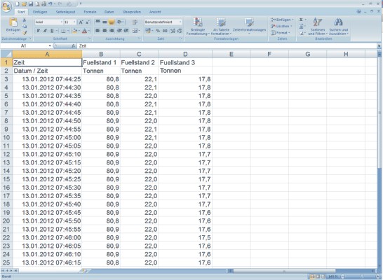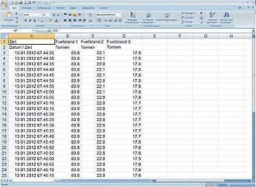 Ausgewählte Messwerte können als Protokolldatei exportiert und mittels Office-Software (z. B. MS Excel®) beliebig weiterverarbeitet werden. Die damit aufbereiteten graphischen Darstellungen ermöglichen eine anschauliche Präsentation. Nicht nur der zeitliche Verlauf, auch die Abhängigkeiten der Messgrößen untereinander können dargestellt werden. Die Daten können auch z. B. in Ihr Warenwirtschaftssystem (SAP) exportiert werden.