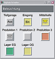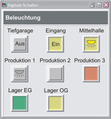 - mit jedem Digitalanzeigeinstrument können maximal zwölf Messstellen bzw. Alarme dargestellt werden. Zusätzlich können mit einem Schaltelement Digitalausgänge per Mausklick gesetzt und zurückgesetzt werden