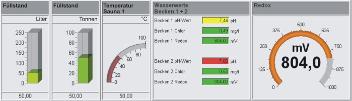 - Prozesselemente können zur übersichtlichen Anzeige der erfassten Messwerte dienen