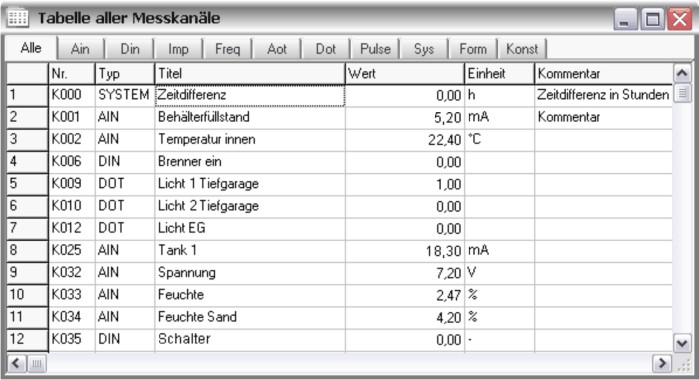 - individuelle Verknüpfungen von Alarmzuständen sind über Formelkanäle leicht zu realisieren