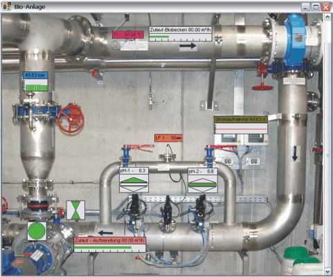 - für die Prozessgrafik werden fertige Grafiken oder Fotos eingelesen und CMA32-OPC-Prozess-Elemente zur Wertedarstellung eingefügt