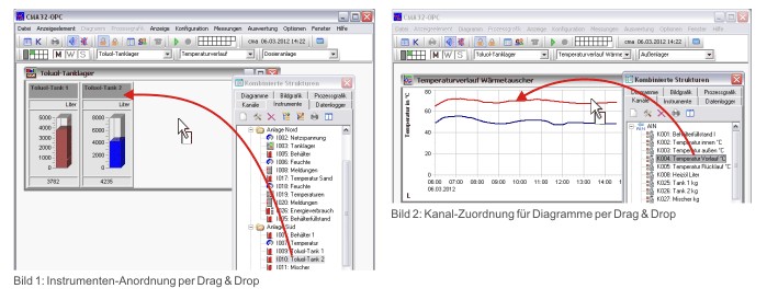 - das Fenster “Kombinierte Strukturen“ ermöglicht neben einer übersichtlichen Explorer-Ansicht das komfortable Definieren per Doppelklick bzw. Zuordnen durch Drag & Drop von Kanälen, Instrumenten und Diagrammen
