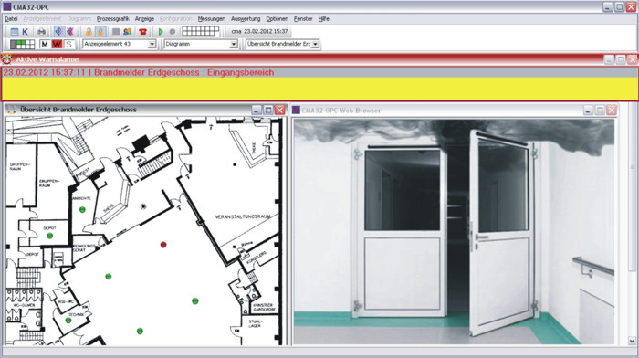 - zusätzliche Einblendung von Gebäudeplänen, installierte Überwachungskameras (Echtzeitaufnahmen) und anderes sind möglich